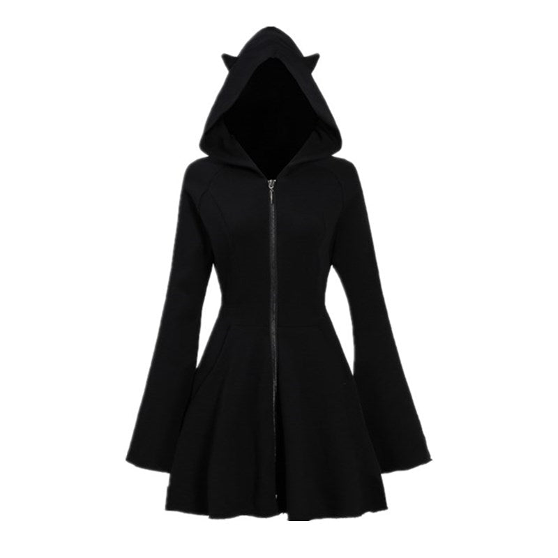 Black Sweatshirt Long Sleeve Hooded Dress